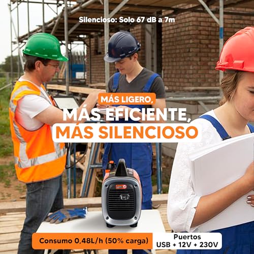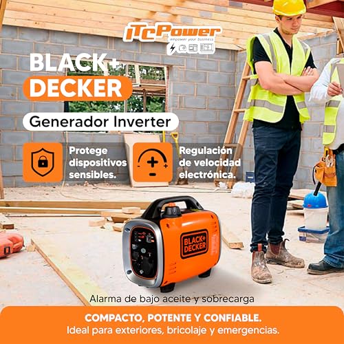 Generador eléctrico BLACK+DECKER Inverter con motor de gasolina 4T, potencia de 0,9 kW, ideal para energía confiable en cualquier ocasión.