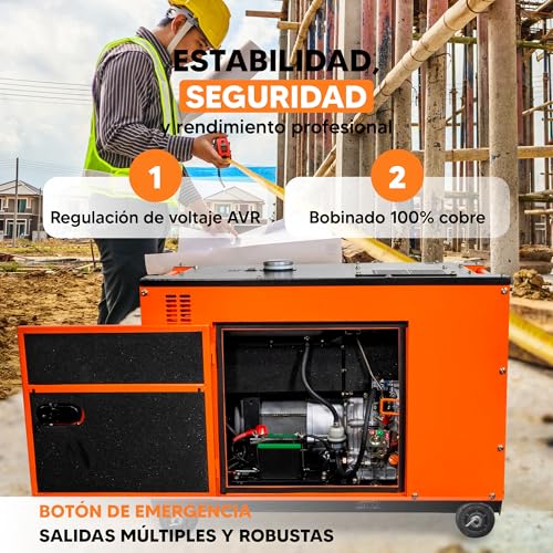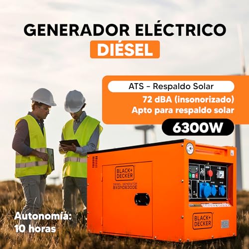 Generador eléctrico diesel BLACK+DECKER de 6,0 kW, ideal para uso doméstico e industrial ligero, con arranque eléctrico y 10 horas de autonomía.
