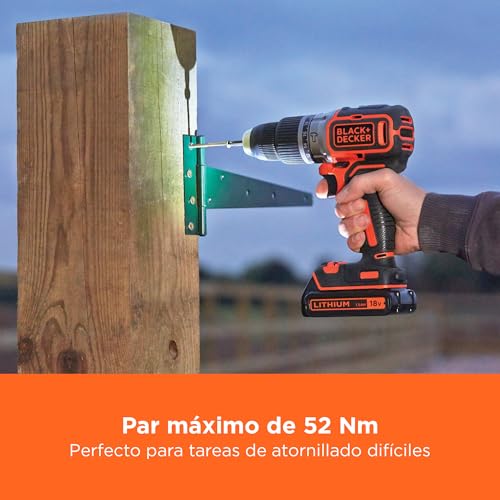 BLACK+DECKER – Taladro Percutor Brushless 18V BLACK + DECKER con 2 baterías 1,5Ah de Lítio, cargador 4A y maletín – BL188KB-QW.