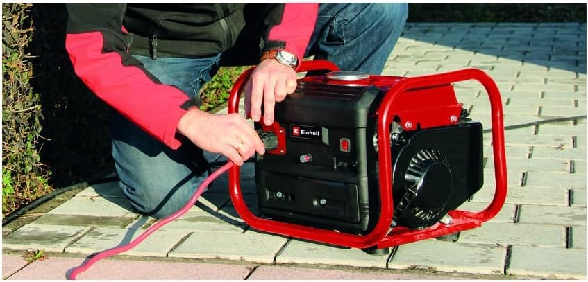 Generador eléctrico Einhell TC-PG 1000, robusto motor de gasolina de dos tiempos, toma de 230 V, regulador de voltaje AVR, fácil transporte y alta eficiencia.