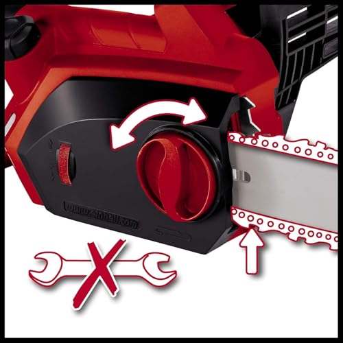 La motosierra eléctrica Einhell GH-EC 1835 ofrece 1800 W de potencia, ideal para aserrar leña y talar pequeños árboles con facilidad. Su diseño robusto y ajuste de cadena sin herramientas garantizan un uso eficiente y duradero.