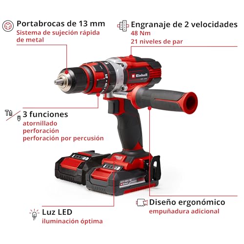 El Taladro de Impacto Inalámbrico Einhell es perfecto para perforar materiales duros como piedra y ladrillo, con diseño ergonómico y alta versatilidad.