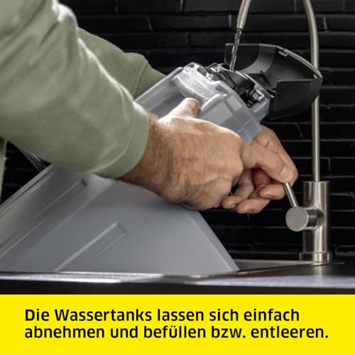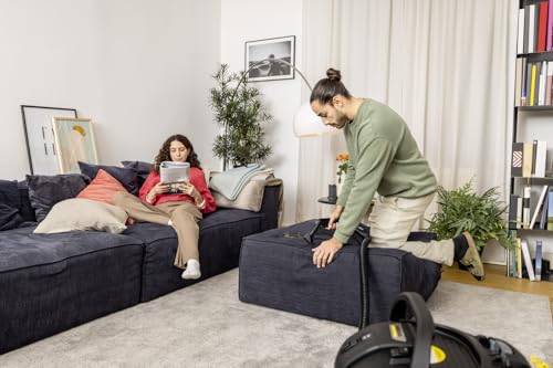 La Karcher SE 4 EU es una lava-aspiradora eléctrica de 1400W, ideal para una limpieza profunda en superficies textiles, suelos duros y tapicerías, con un sistema de pulverización y aspiración integrado.