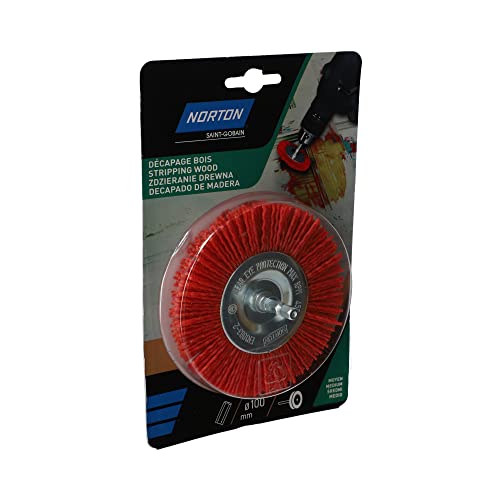 Cepillos Norton de nailon rojo para decapado rápido de madera, ideales para eliminar pintura y barniz de manera eficiente.