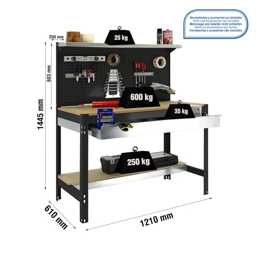 Banco de trabajo SIMONRACK SIMONWORK BT3 BOX 1200 en antracita/madera, capacidad de 600 kg, con cajón de almacenaje.