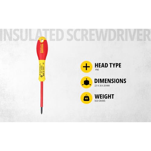 Destornillador Phillips aislado Stanley: seguridad, ergonomía y calidad industrial para trabajos eléctricos.