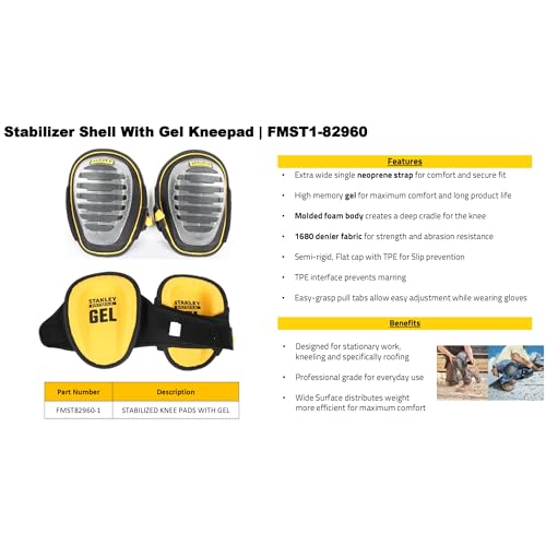 Las Rodilleras Gel Estabilizadas Stanley ofrecen comodidad y protección superior gracias a su diseño ergonómico y material duradero.