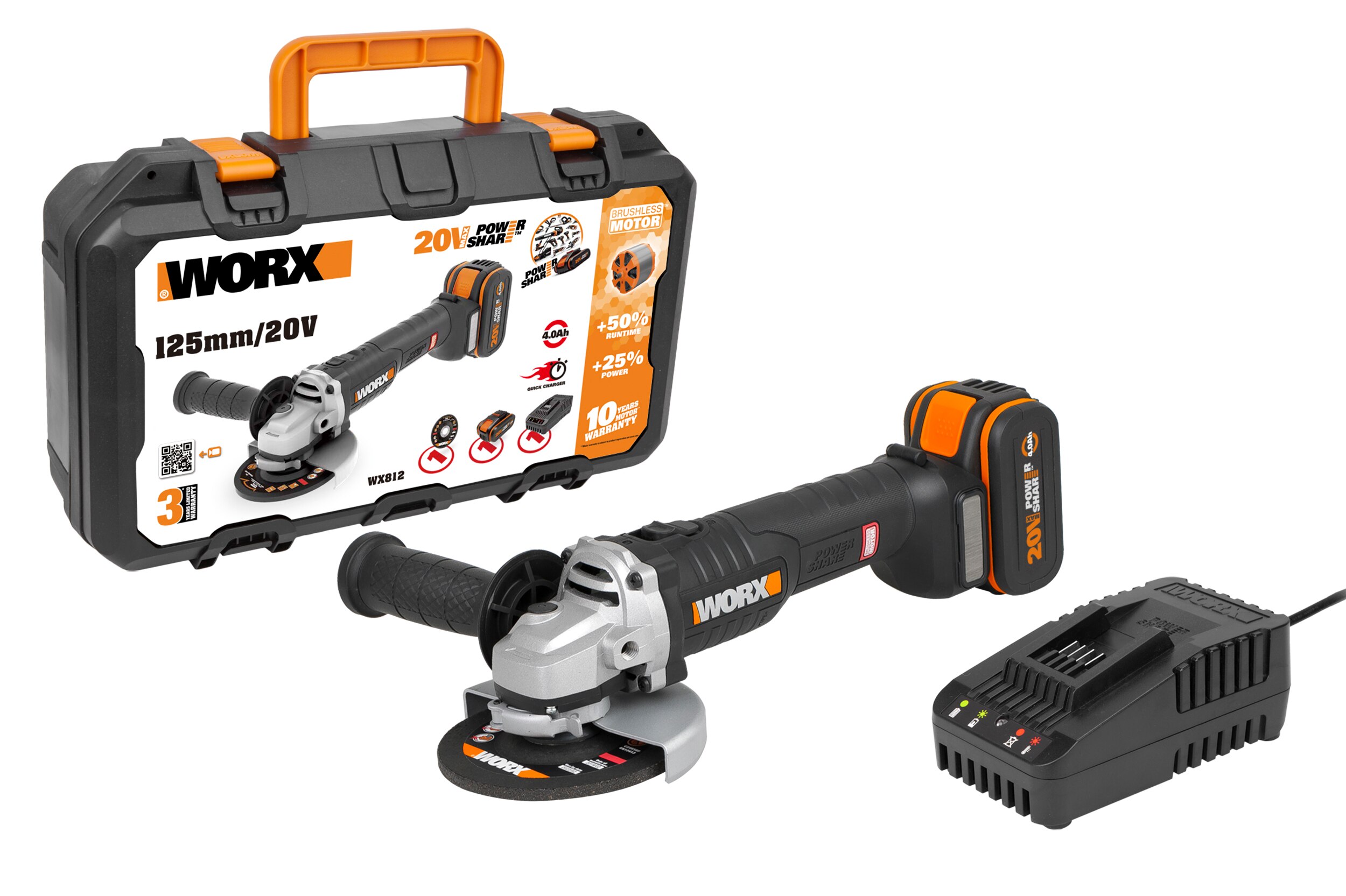 Worx – Amoladora Angular Motor Brushless a Batería 20 V WX812 Ø 125 mm.