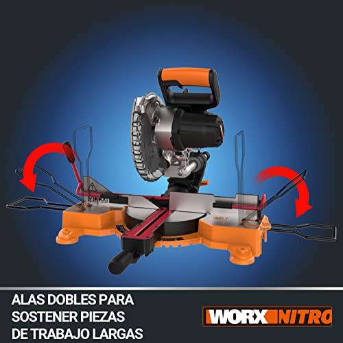 Ingletadora telescópica a batería Worx WX845, ideal para cortes precisos en madera, plástico y aluminio, con portabilidad y precisión láser.