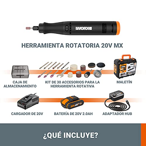 Worx – Mini Herramienta a Batería 20 V + HUB Conexión Batería + Accesorios.
